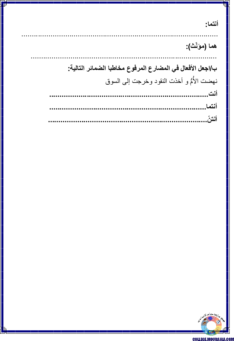 تمارين حول تمارين قواعد الغة في مادة العربية لتلاميذ سنة السابعة اساسي