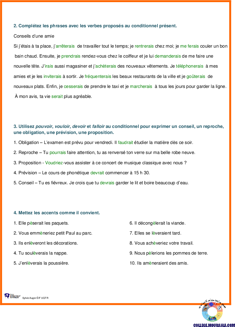 la leçon se deroule sur conditionnel present pour aider l eleve de septieme annee Pour reviser ses cours et ses examens en le téléchargeant sous forme de fichier pdf ou en le visualisant sous forme d'images