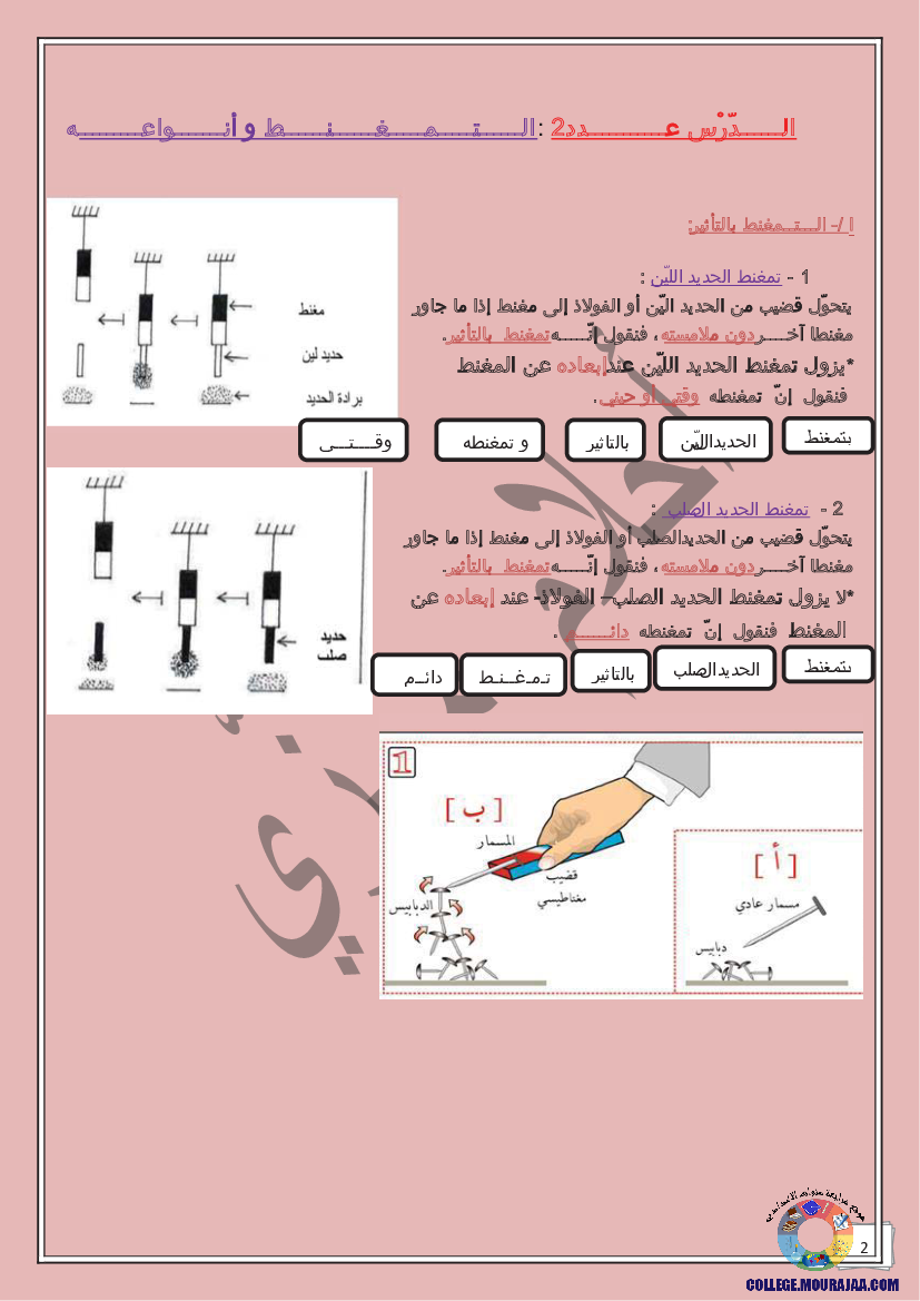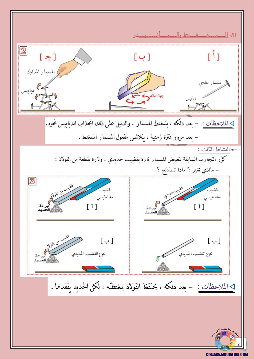 درس حول المغانط في مادة العلوم الفيزيائية لتلاميذ سنة السابعة اساسي