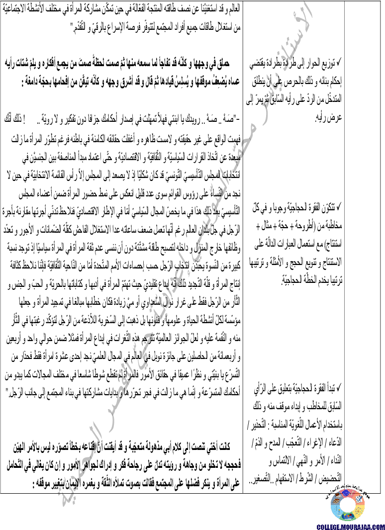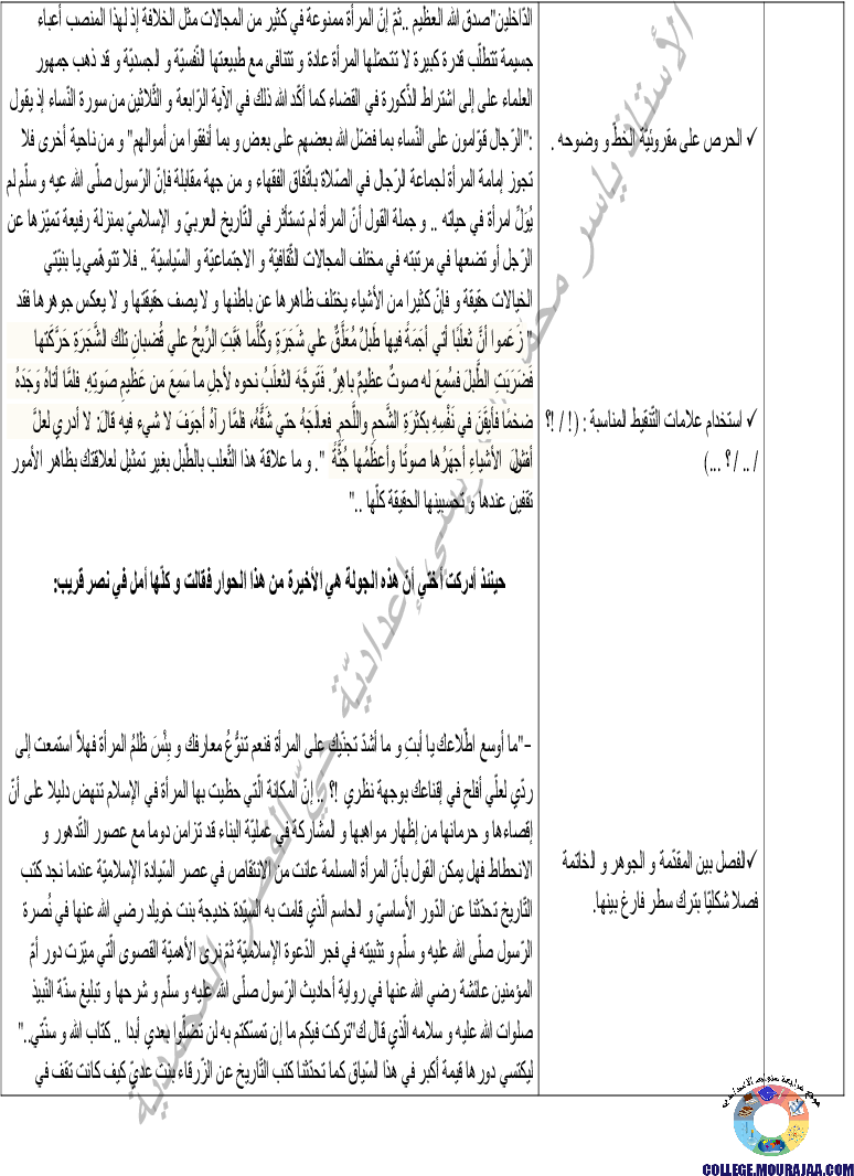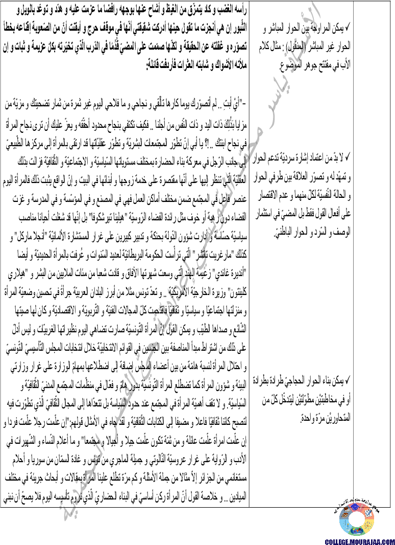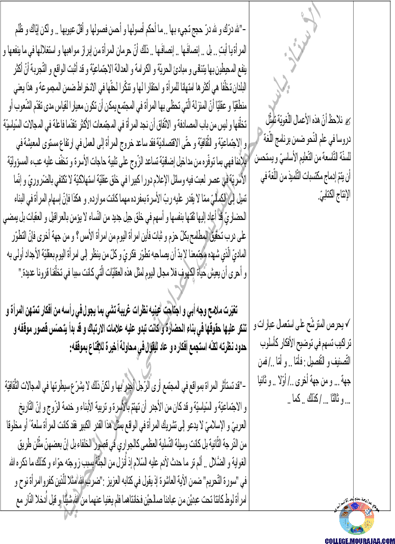 درس حول المرأة في مادة العربية لتلاميذ سنة التاسعة اساسي