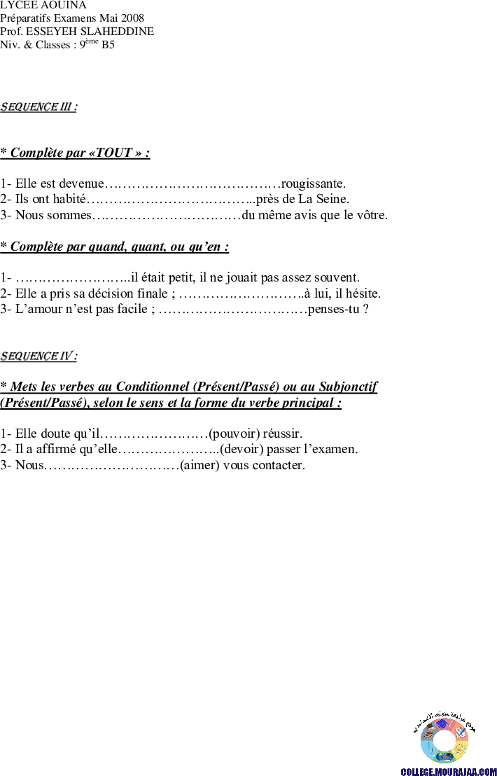 plus des exercices , fiches et des resumés pour les éleves de neuvieme année de matiere francais .