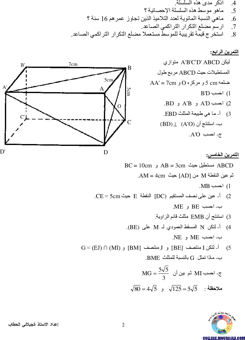المزيد من التمارين و التلاخيص و الدروس لتلاميذ سنة التاسعة اساسي في مادة الرياضيات جاهزة للتحميل
