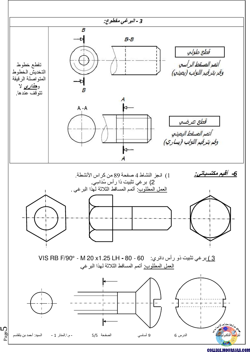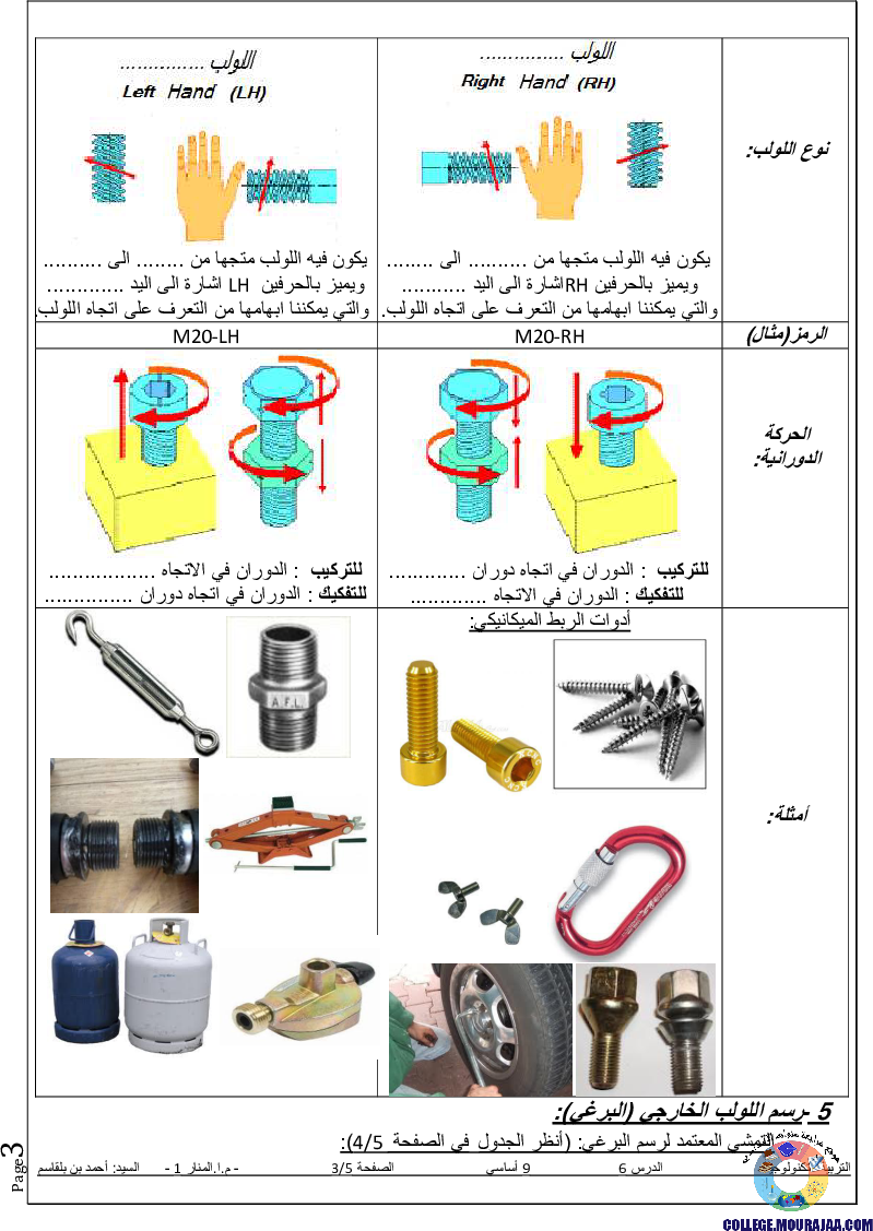 تحميل تلخيص درس اللوالب-الخارجية-البراغي في مادة التربية التكنولوجية