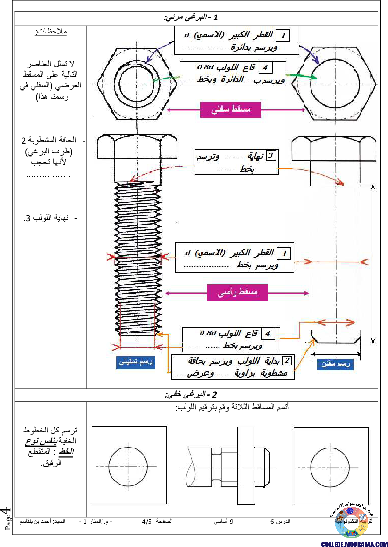 تلخيص درس اللوالب-الخارجية-البراغي في مادة التربية التكنولوجية