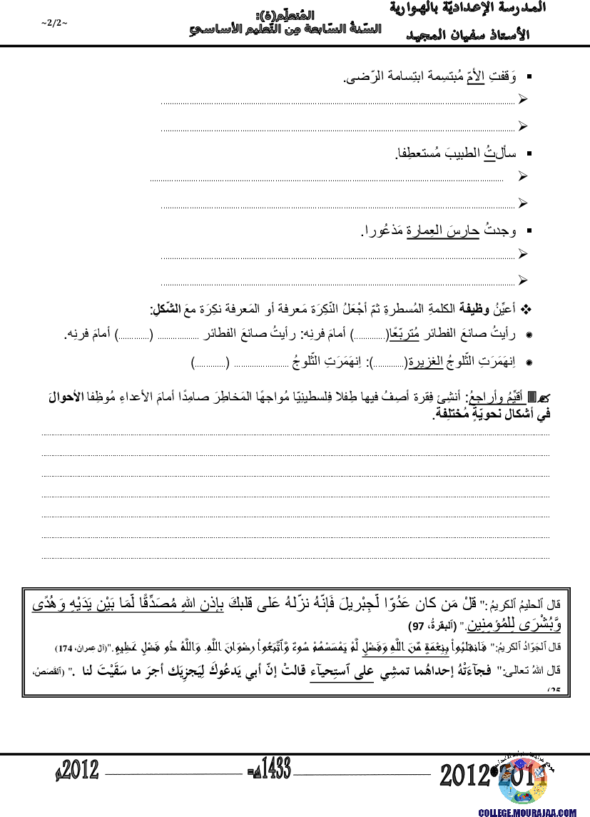 المزيد من التلاخيص و الدروس لتلاميذ سنة السابعة اساسي في مادة العربية جاهزة للتحميل
