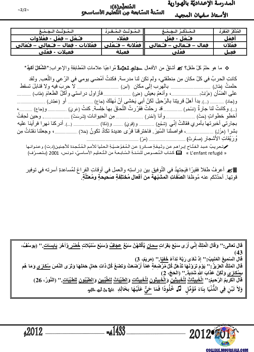 المزيد من التلاخيص و الدروس لتلاميذ سنة السابعة اساسي في مادة العربية جاهزة للتحميل